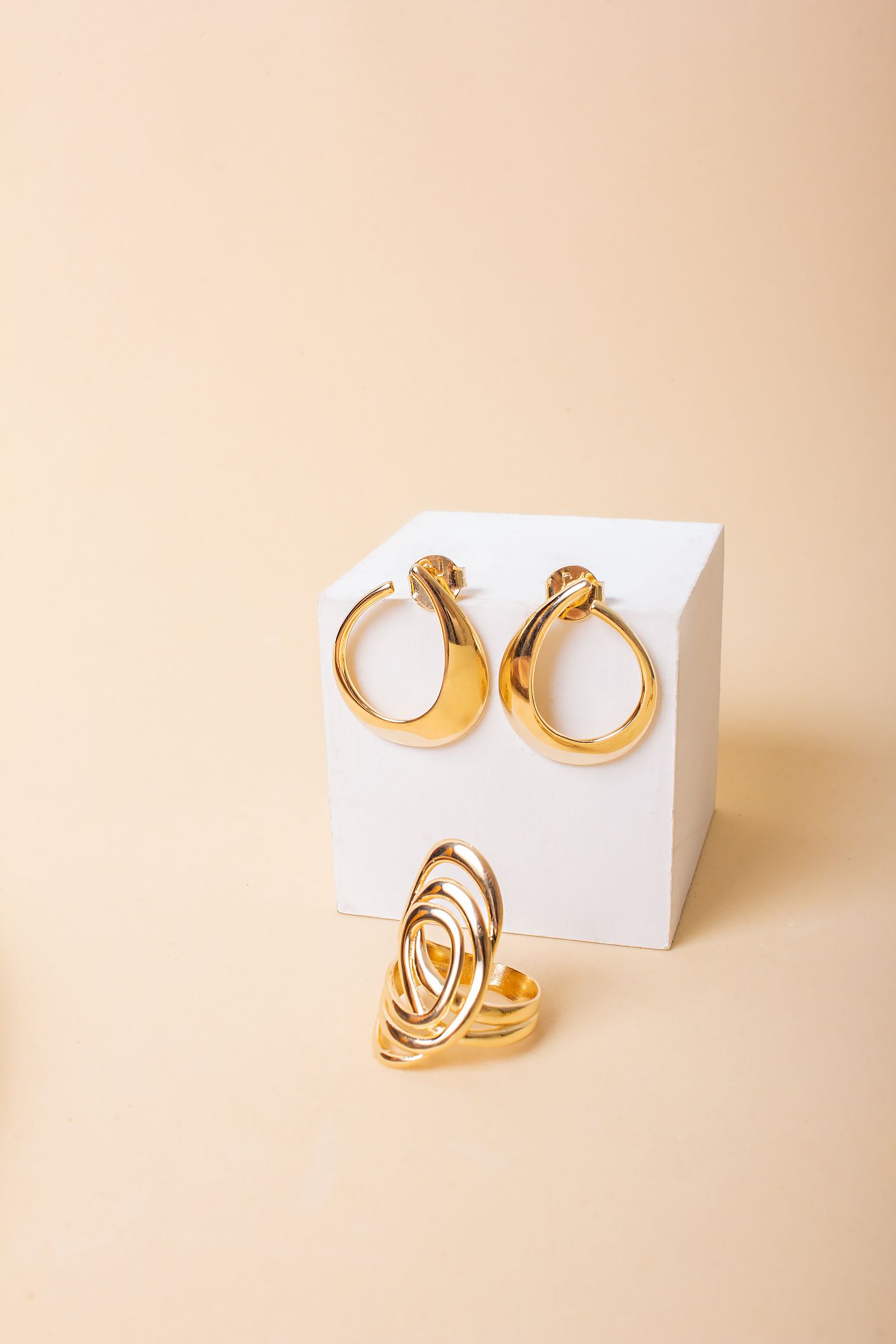 Brinco finamente banhado a Ouro 18k com estilo de uma gota vazada.