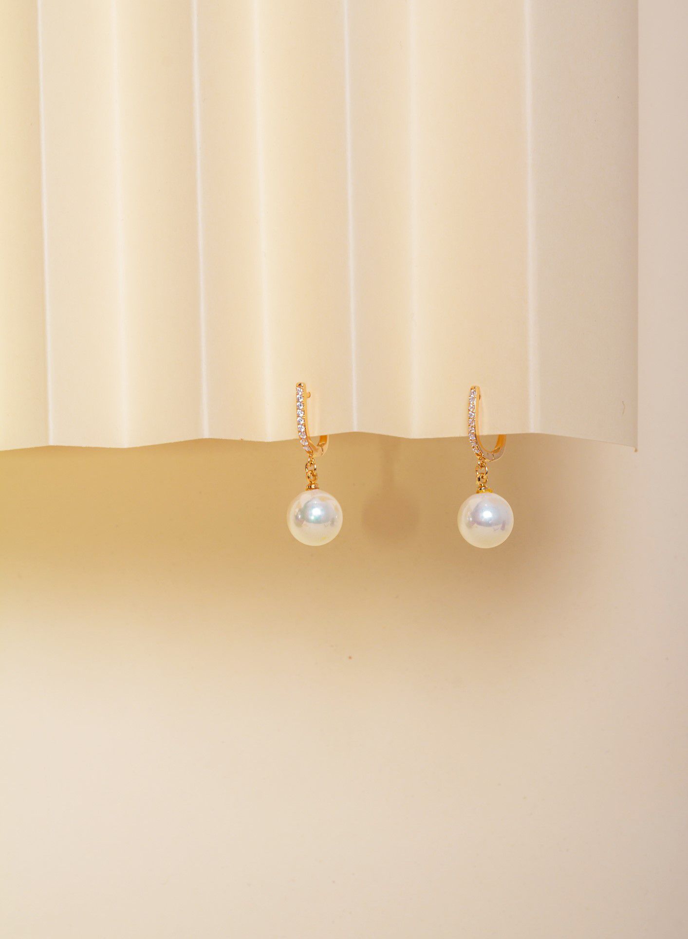 Brincos finamente banhados a Ouro18k de formato estilo argola em U com Microzircônias na frente e Pérola de 12mm de diâmetro.