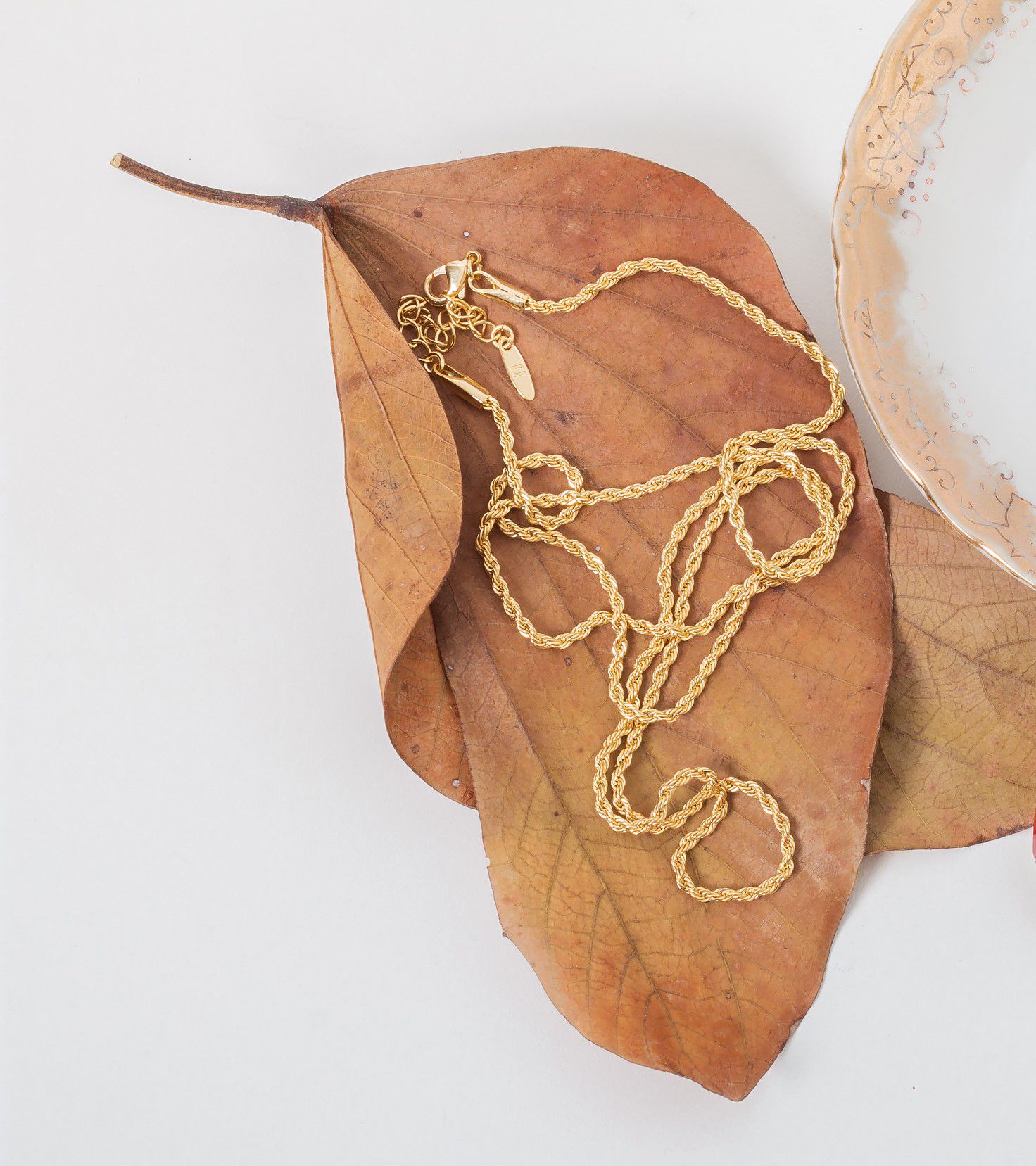 Corrente folheada a Ouro 18k com design retorcido dando um brilho magnífico a peça.