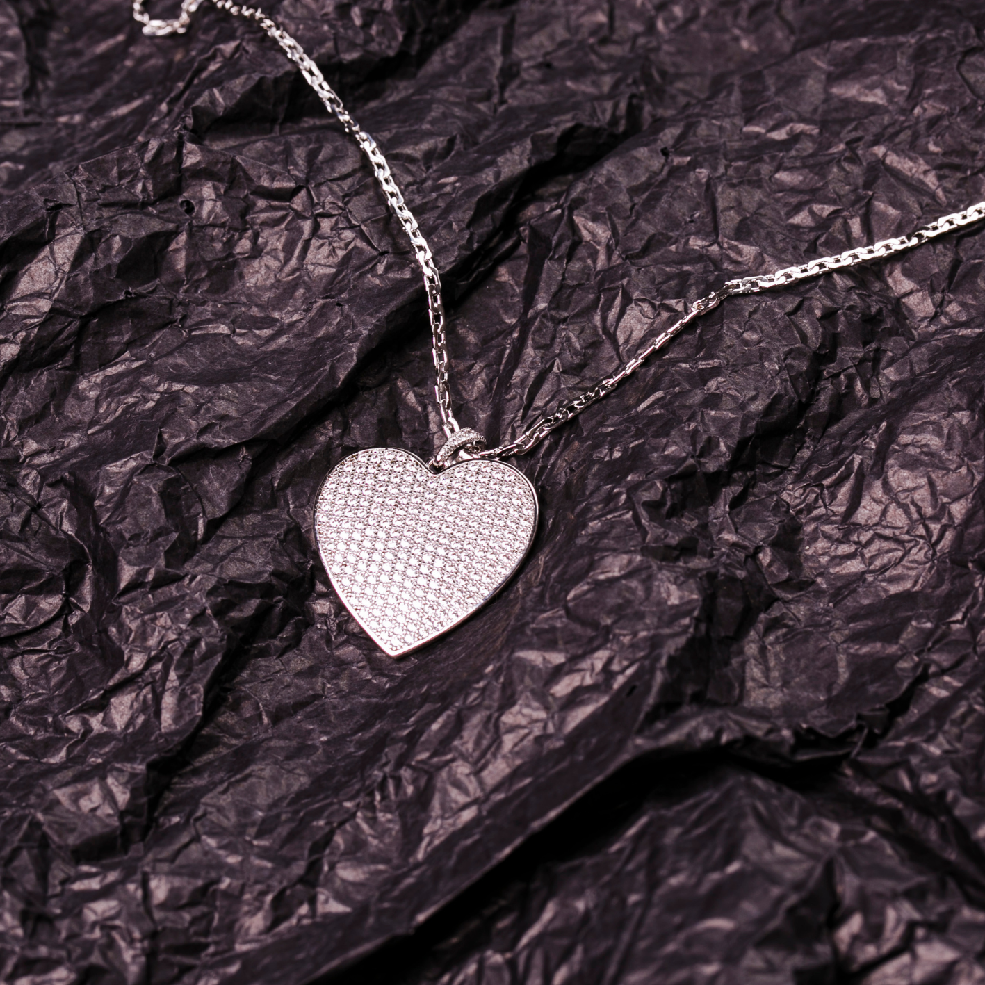 A gargantilha afeto trata-se de uma corrente de 36cm de comprimento com extensor de 10cm, estilo italiana bem delicada, pois tem apenas menos de 2mm de espessura, com um pingente super brilhante em formato de coração de 25x25mm. Quem confere esse brilho a peça, além do maravilhoso ródio branco, certamente são as Zircônias microcravadas ao longo de toda a face do pingente.